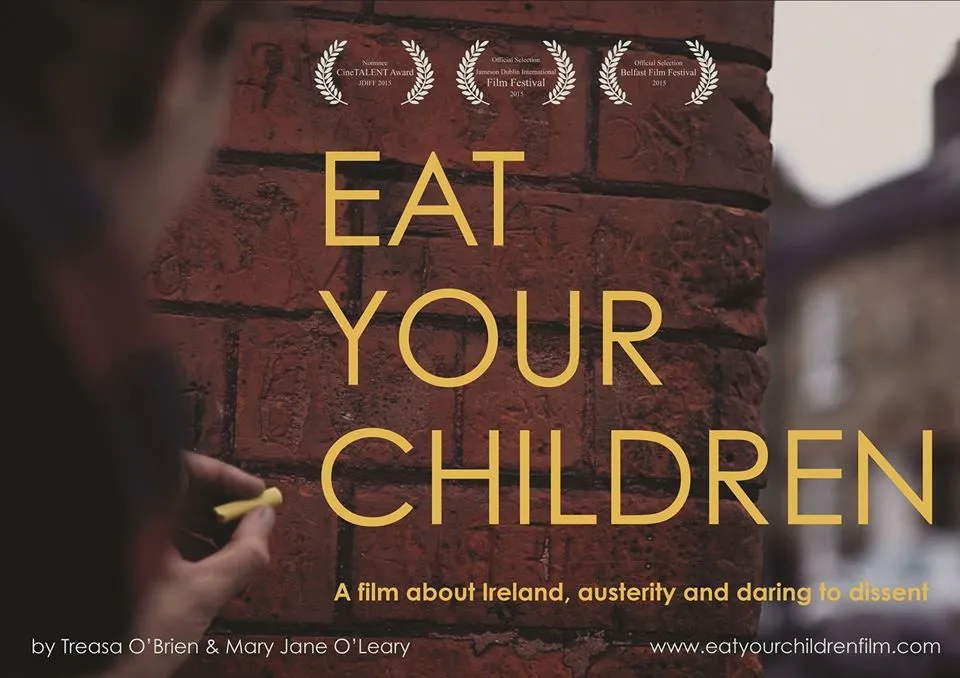 Eat Your Children is a provocation, an inside-out activist film, a film that attempts to document the invisible. It is a road-trip quest by two friends who were part of the large emigration statistics who left Ireland during the financial crash of 2008. They returned on an all-island road trip in a borrowed van to probe Ireland's so-called acceptance of debt and austerity.